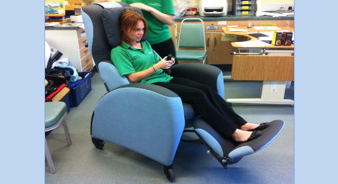 Kaylie and our seating specialist representative Charlotte Jeffes visited Frenchay Hospital yesterday to give the OTs at the Head Injury Rehabilitation Unit a demonstration on the new GE-II specialist seating chair from Kirton.